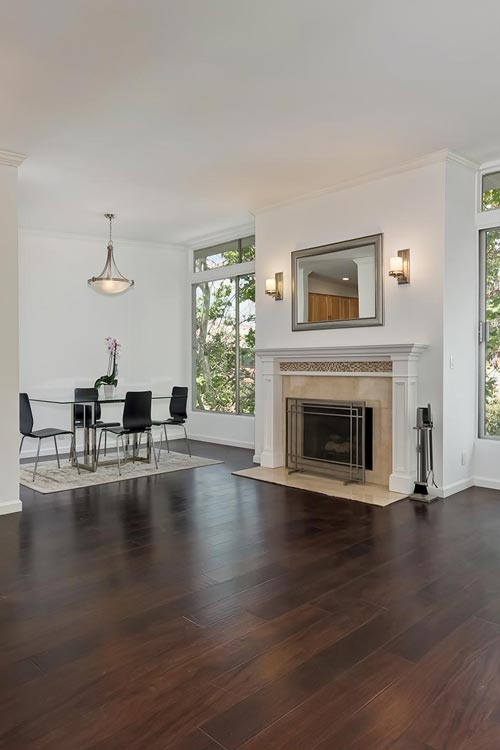 Great 2 bedroom / 2 bathroom condo in a small, 17-unit building. Corner unit (only one shared wall). Security building (intercom entrance). Updated kitchen with granite counter tops, stainless steel appliances (all appliances included). Side-by-side French door refrigerator. All dark hard wood type floors in living area/bedrooms. Master bedroom has walk-in closet. Updated bathrooms; master bath has double sinks and jetted tub. Huge walls of windows in main living area and bedrooms lets in tons of natural light. Long enclosed balcony has direct access from both bedrooms and living area. Recessed LED lighting. Partially furnished if tenant chooses at no additional costs (tenant can choose to keep glass dining table/chairs, iron/glass bookshelf & bar stools or choose to have them removed).